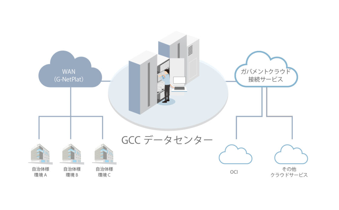 国が提供するガバメントクラウドへの接続方法として、既存の閉域網を活用したデータセンター共同利用方式により、ガバメントクラウド接続サービスを提供しています。